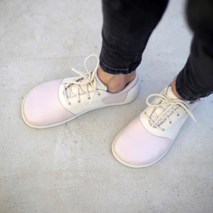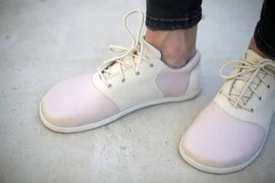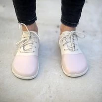 Polobotky jsou ušité z krémové hladké kůže. Bude se v nich dobře chodit všem, kdo mají rádi barefootové boty, svobodné nohy a kontakt se zemí. Boty jsou navrženy a ušity tak, aby v nich noha mohla pracovat co nejpřirozeněji. Mají prostornou špičku, prsty nejsou stlačovány a deformovány. Podšívka je ze světlé, jemnější kůže. Podrážka je tenká (3mm+ 1mm vzorek), ohebná příčně i podélně, umožňuje cítit terén – díky tomu je chodidlo s každým krokem přirozeně masírováno. Boty jsou lehké, pohodlné, vhodné k nošení od jara do podzimu.